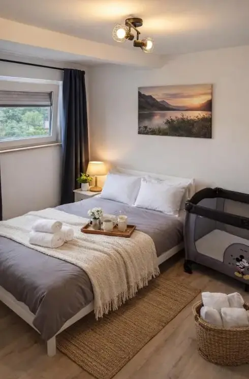 Functionally furnished, quiet location, everything okay!!! Beds are okay. Simply furnished, everything functional. Also ideal with children